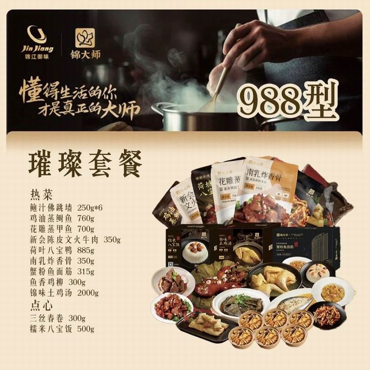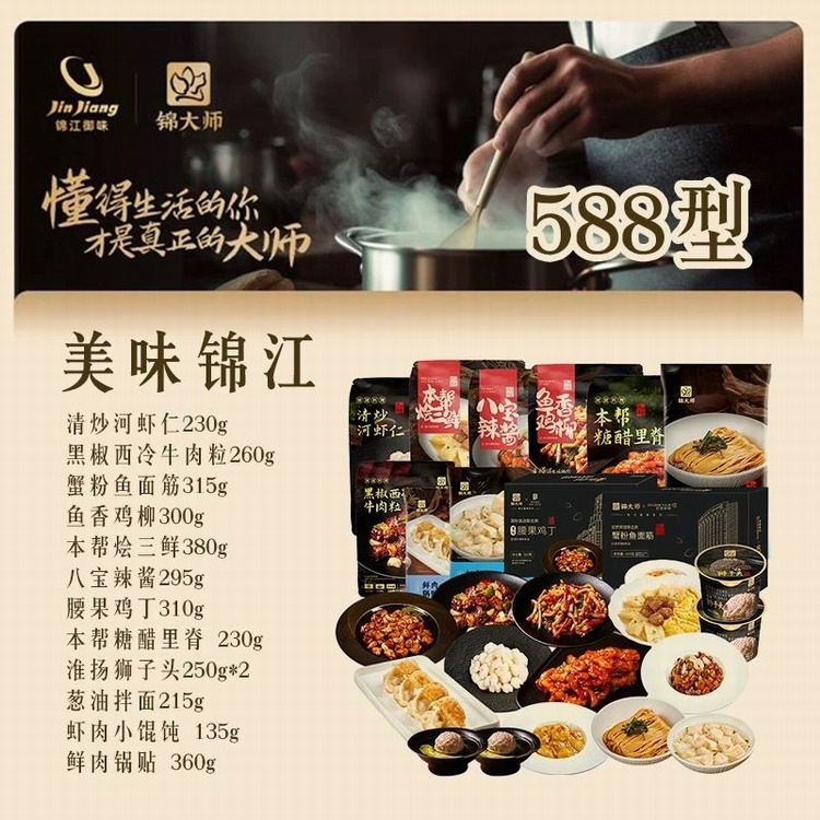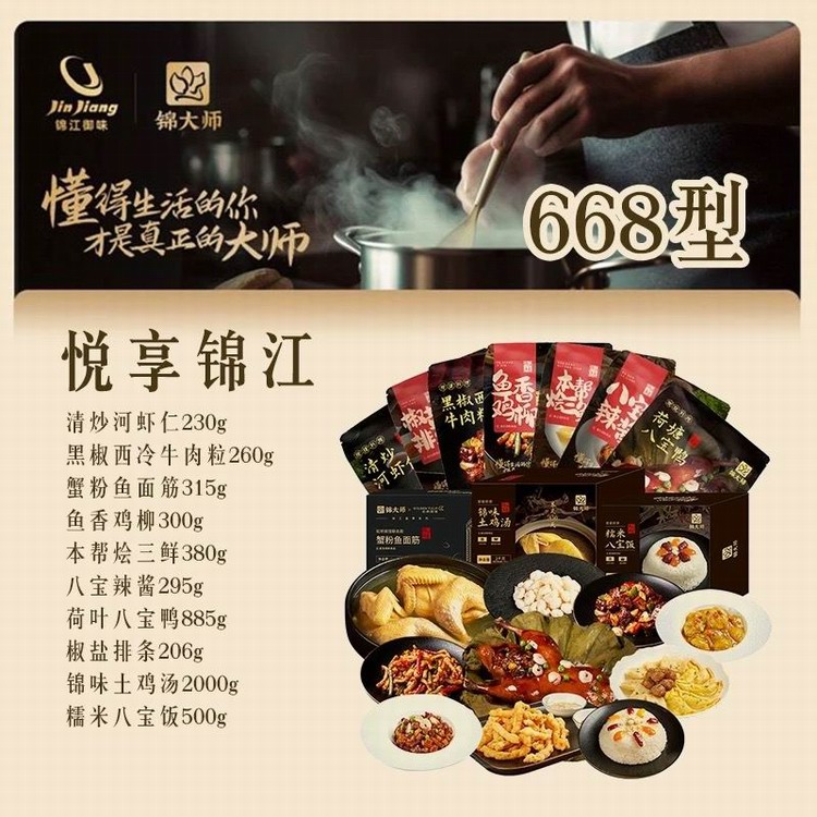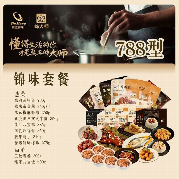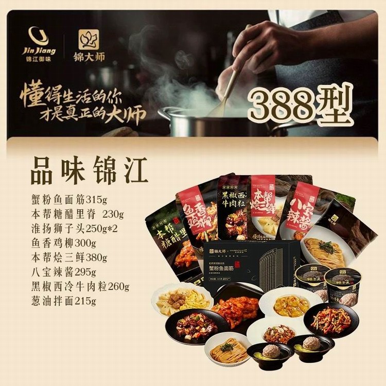 介绍:锦大师是锦江集团旗下锦江御味推出的品牌。融合"锦江菜系"精髓与特色,传承锦江品牌80多年美食文化基因,研发严控菜品质量在预制菜赛道上争得一席之位......